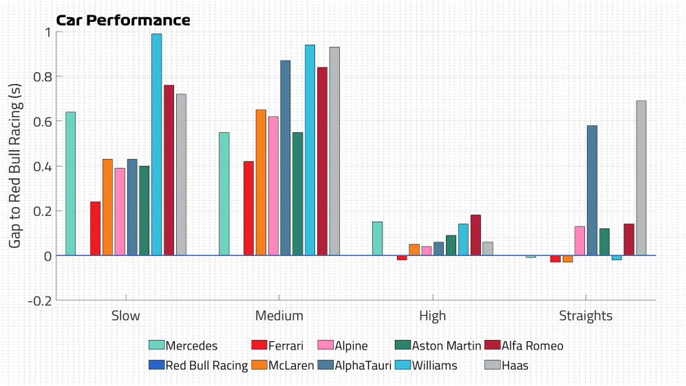 On the straights, only Ferrari edge them, and their form in the high speed is decent – but they have large deficits in the slower stuff.