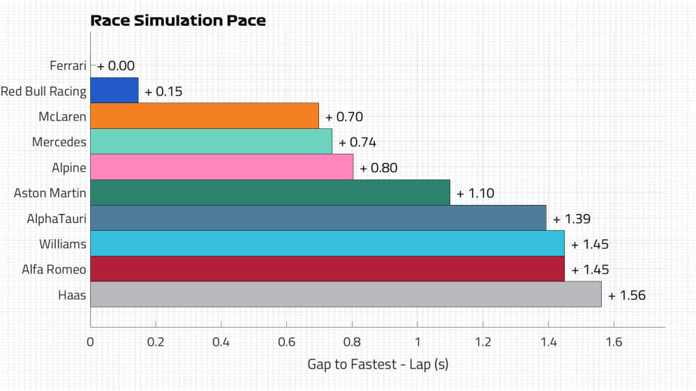 When it comes to race pace – where they have traditionally been second to Red Bull this year – they hold a slender edge at 0.15s and that means getting the strategy right and good tyre management will be key if they want to convert it into victory.