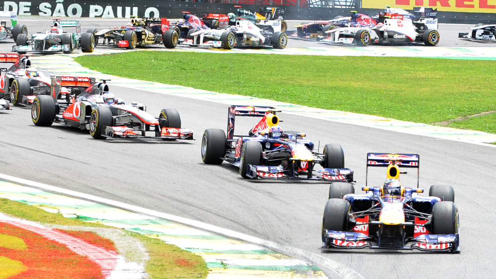 On four occasions in 2011, when Button – then driving for McLaren – finished second in the standings to a dominant Vettel, he shared the podium with the Red Bull drivers. When those three did finish in the top three, Vettel won four races, Button two, and Webber one (Brazil 2011).