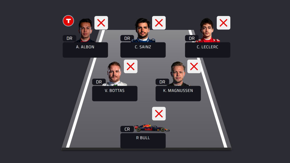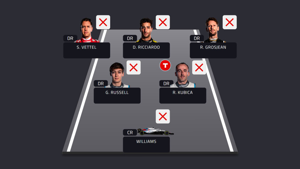 Sebastian Vettel, Daniel Ricciardo and Romain Grosjean’s retirements from the race also usher them into the least optimal team, Grosjean’s tally for the year now standing at a whopping 10 appearances in 16 Grands Prix.