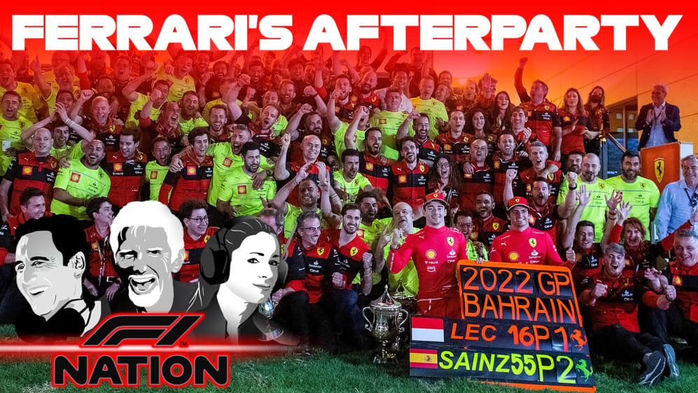 Hosts Tom Clarkson, Natalie Pinkham and Damon Hill jump into Ferrari’s celebrations and talk to the happy people behind the team’s one-two finish at the season-opening Bahrain Grand Prix.