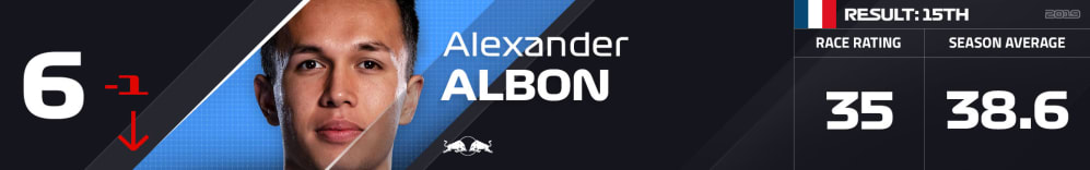 The Toro Rosso driver slips down a place in this week’s Power Rankings following a lacklustre weekend for the team at Paul Ricard. Having been passed over for the upgraded Honda engine given to team mate Daniil Kvyat, as well as the two Red Bull drivers, Albon then struggled for race pace before going on to finish a lowly P15, one place behind his back-of-the-grid starting team mate after a firm-but-fair fight between the pair. With an average score of just 36 from the past four races, however, Albon will need to bounce back quickly if he’s to remain a part of the Power Rankings elite.