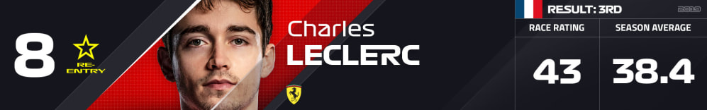 Leclerc does the Power Rankings hokey-cokey, having dropped out after an anonymous Canadian Grand Prix before clawing his way back in again at Paul Ricard. That was thanks to a performance from the Monegasque which was much more in keeping with the form we were expecting from Leclerc in 2019, as he qualified a worthy third before hounding Valtteri Bottas to the end of the race in an ultimately futile bid to gain second place. Confidence-boosting for him, morale-boosting for Ferrari fans.