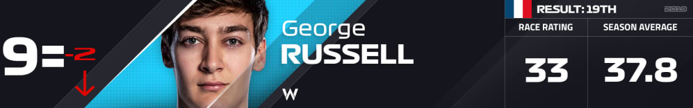 Leclerc re-entering the top 10 meant that someone had to give way, and that someone was Sergio Perez, the Mexican taking his second consecutive 33-point haul after another trying weekend. He remains on the bubble, however, just behind Alfa Romeo’s Kimi Raikkonen, with the judges giving the Finn a 43 – his best score of the year to date – after a feistier performance from the Iceman in France than we’ve seen recently.