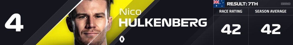 Given that Daniel Ricciardo has been grabbing all the headlines at Renault since his arrival at the team, Nico Hulkenberg must have been chuckling to himself after beating his team mate in qualifying – and at Ricciardo’s home circuit to boot – before enjoying a silky smooth Sunday afternoon as Ricciardo’s went spectacularly off the rails. The seeds of Hulkenberg’s strong race performance were sewn by a phenomenal getaway from 11th on the grid up to eighth, while Grosjean’s retirement later in the race then boosted him up to seventh – the position he’s finished in Australia for four of the last five years.