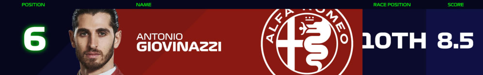 A really excellent weekend from Antonio Giovinazzi, who’s quietly been doing some very good work indeed in Alfa Romeo #99 this season. A great lap by Giovinazzi in the second segment of qualifying was enough to give Alfa their first Q3 appearance of the year, while the Italian was then able to convert that to the team’s first point of the season on race day.