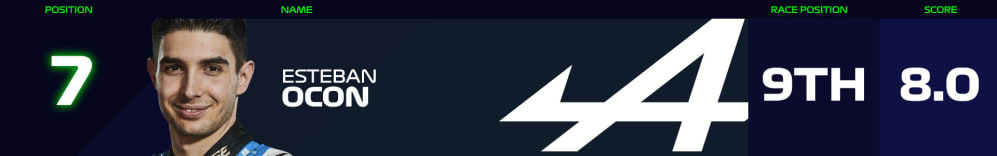 Alpine once again had to look to their 24-year-old charger Esteban Ocon – rather than their two-time world champion Fernando Alonso – to lead the way for them this weekend. 0.077s off making Q3 as Alonso fell out in Q1, Ocon then made the overcut work on Giovinazzi – the driver who’d denied him in qualifying – to take his fourth straight points finish in P9.