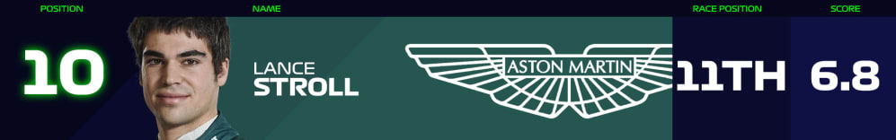Lance Stroll should have been rightly proud of his Lap 11 battle with Alpine’s Fernando Alonso – not an easy driver to out-wit in wheel-to-wheel combat – Stroll showing excellent spatial awareness to brave it out around the outside of the Spaniard at Turn 4 at the Safety Car restart before holding the position into Turn 5. Alas, Stroll’s good work wasn’t rewarded with points, the Aston Martin driver pipped by Pierre Gasly in the closing stages as he came home 11th.