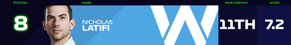 The Canadian out-raced team mate Russell in the Sprint to finish P14, and ran in the top 10 at points only to get unlucky with the timing of the Safety Car, which allowed the fresher-tyred Esteban Ocon to pass him for P10 as Latifi finished just outside the points.