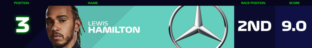Valtteri Bottas and Sergio Perez find themselves tied on 11th spot this week. In his final race for Mercedes before news dropped of his departure to Alfa Romeo for 2022, Bottas couldn’t match the high-wire driving of team mate Hamilton on Saturday and Sunday, but still came home for a podium.