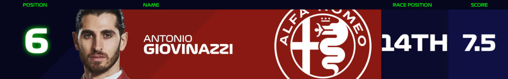 With Antonio Giovinazzi knowing that he’s fighting to be kept on at Alfa Romeo and partner Valtteri Bottas at the team for 2022, the Italian really stepped up in qualifying with an outrageous showing to take seventh on the grid, a full 0.343s quicker than the next fastest car. A victim of circumstance on the first lap, Giovinazzi was 10th by the end of the opening tour, while a puncture then scuppered a race that had promised so much.