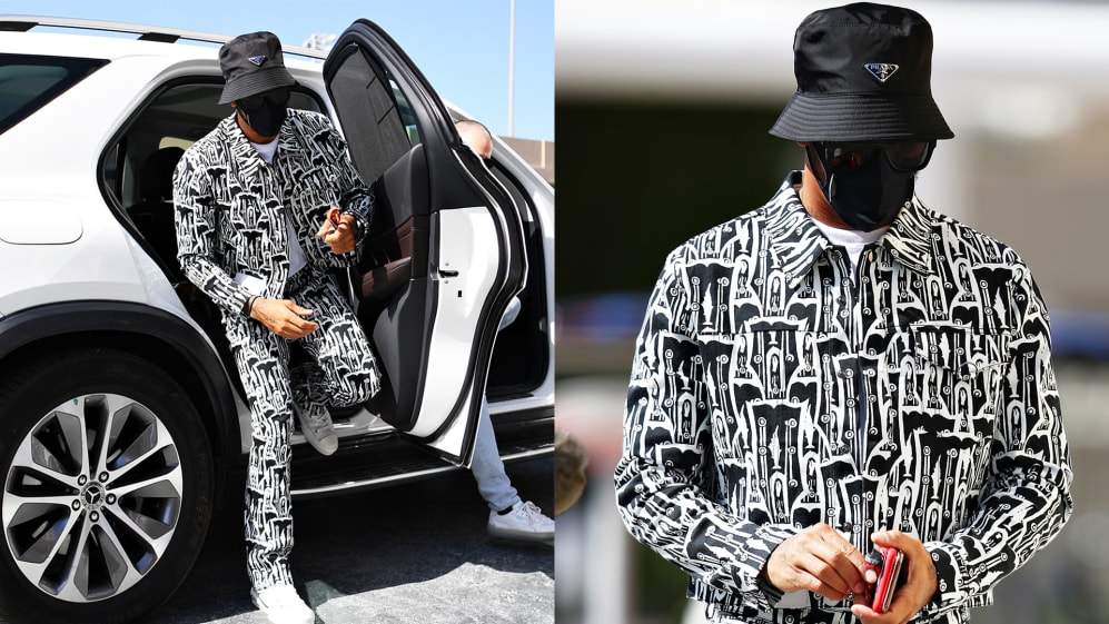 Seventh title well and truly sewn up, Hamilton’s return to action at Abu Dhabi after his bout of Covid-19 saw him pull out this monochrome double denim combo from New York-based designer Pyer Moss, capped off with a Prada bucket hat and Louis Vuitton sunnies designed by Hamilton favourite Virgil Abloh.