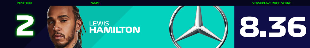 Our judges voted eventual champion Max Verstappen the top performer of 2021, and it seems you agreed too, handing the Dutchman – who only finished outside the top-two four times across the season’s 22 races – a chart-topping score of 8.80. Simply lovely.