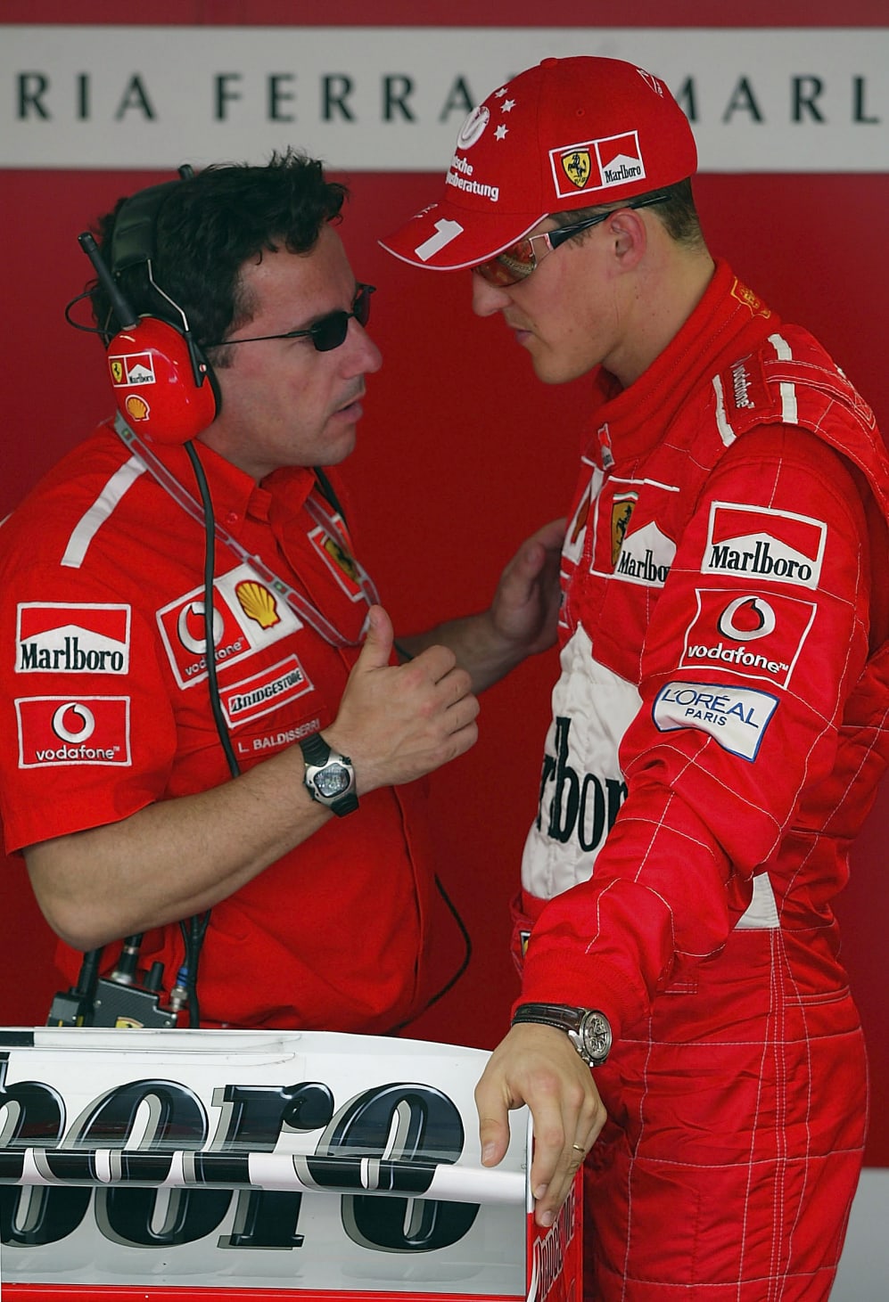 Ferrari’s chief strategist Luca Baldisserri had given this some thought even in the week before the race, in the full expectation of what Ferrari’s challenges would be. If – as seemed feasible – Schumacher did not get pole and also lost out at the start to the Renault’s renowned rocket-like getaways, Ferrari needed to think outside the box, needed to find a way of getting Schumacher the clear track to properly express his car’s performance. Otherwise Renault could win this purely on always having the track position advantage.