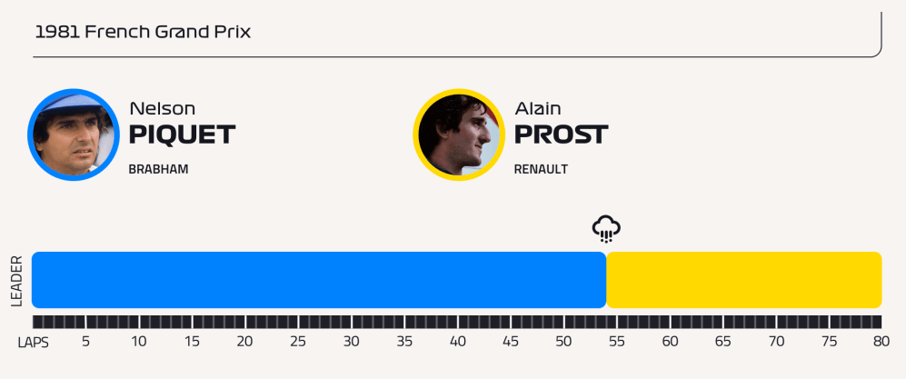 Renault and Prost together had made an audacious choice, brilliantly exploiting the little present the weather had provided. Prost had a Grand Prix victory under his belt in just his second season of F1. There would be many more.