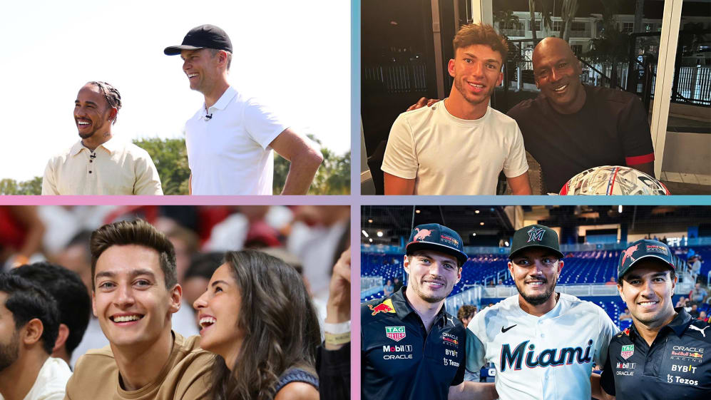 Another driver visiting a Miami sports team was Mercedes’ George Russell, who was caught on the jumbotron sitting courtside at the Miami Heat’s most recent playoff game against the Philadelphia 76ers.