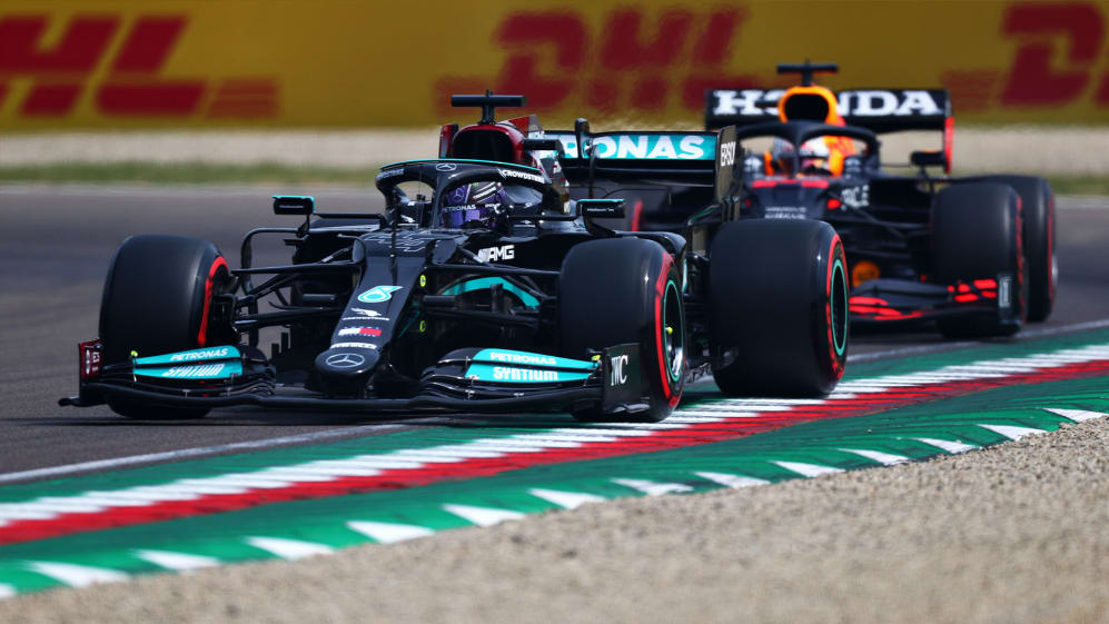Hamilton, Red Bull’s Sergio Perez and Max Verstappen all finished within a tenth of each other in qualifying at Imola, Hamilton on pole from Perez by just 0.035s – with Verstappen just 0.052s further back.