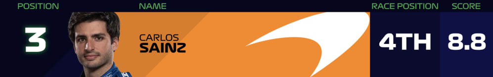 Sainz enjoyed a sensational start to the Sakhir Grand Prix, weaving his way through the Lap 1 carnage to climb from P8 to P3 when the Safety Car was called, and then bothering the Mercedes of Valtteri Bottas at the Lap 7 restart. Yes, you could say he was unlucky to be called in under an all-too-brief Virtual Safety Car for his second pit stop. But ultimately, the Spaniard did well to finish as the highest of the true two-stoppers (ignoring Perez’s Lap 1 stop) to claim P4 – his third straight top-five finish.