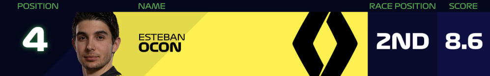 Narrowly behind Sainz in the Power Rankings standings came Esteban Ocon, who’s had a difficult return to F1 in 2020, but who drove well in Sakhir and took the opportunities that came his way to score his first ever F1 podium with a P2 finish. That would have been P3 if he hadn’t executed a lovely pass on Lance Stroll just after the Canadian had emerged from the pits on Lap 43, Ocon going around the outside of the Racing Point at Turn 4 for what was undoubtedly his move of the season thus far.