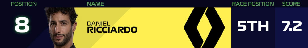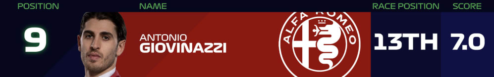 In what was, on the whole, a low-scoring race, four drivers found themselves tied on 11th place with scores of 6.6: Pierre Gasly, Kevin Magnussen, plus F1 debutants Jack Aitken and Pietro Fittipaldi.