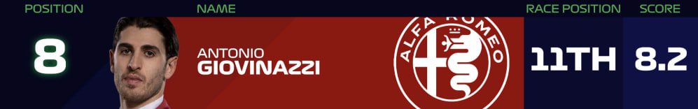 With hordes of Ferrari juniors eyeing up Antonio Giovinazzi’s Alfa Romeo seat for next year, this was a timely moment for the Italian to put in one of his most convincing drives of the season. A fantastic start saw him climb from 17th on the grid to P12, before he showed enough pace to frustrate the afternoon of Sebastian Vettel in the works Ferrari and finish just out of the points in 11th, having passed Haas’ Kevin Magnussen six laps from the end.