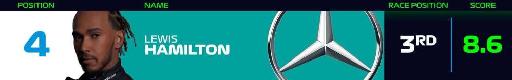 Third at the chequered flag, Lewis Hamilton has the fourth-highest Power Rankings score after Bahrain having squeezed everything out of his Mercedes W13 – a car that isn't considered a championship-contender just yet – to snatch a podium when the Red Bulls suffered reliability issues.