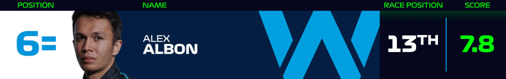Another driver who impressed on his first race for his new team, Williams' Alex Albon was expected to languish around the back of the pack – his team mate Nicholas Latifi finishing 16th – but ended up P13 by the flag, and ahead of the McLarens to boot.