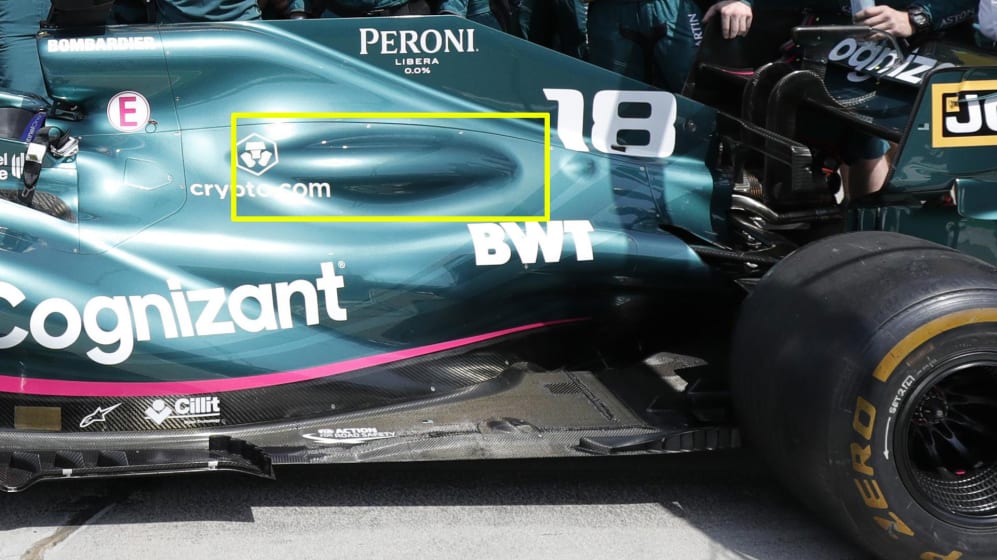 These have been delivered in a quite different way from those of Honda. We have less detail of the internal changes, but we do know that the infamous engine cover bulge on the Mercedes (and Aston Martin, below) is related to a significant part of the power increase. The bulge is to clear what is believed to be a special chamber within the intake plenum where the air which will be fed to the combustion chamber is prepared. The air in this chamber within the plenum is ‘super-cooled’.