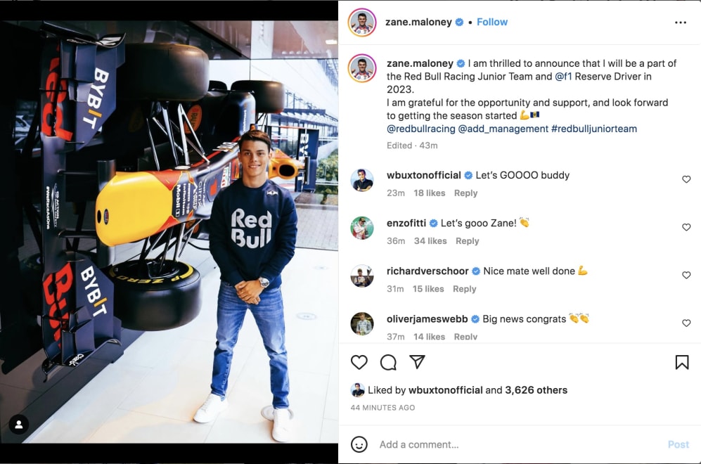 Zane Maloney has become the newest member of the Red Bull Racing Junior driver programme. The Barbadian will also serve as one of the team’s reserve drivers for the 2023 Formula 1 season.