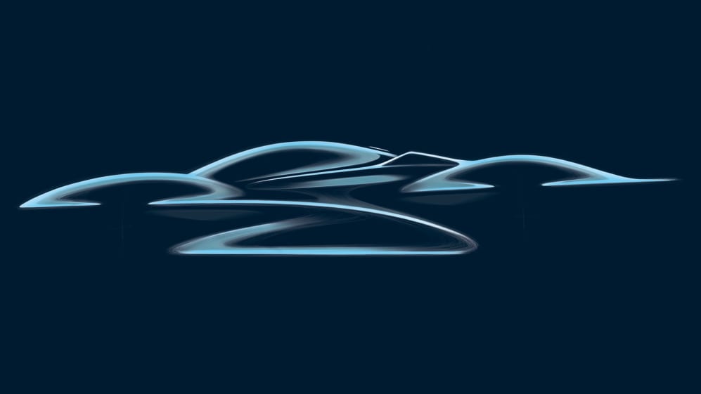 Powered by a V8 hybrid engine, power specs are quoted at over 1,100bhp, with the two-seat hypercar designed around a carbon-composite tub and utilising ground-effect – just like the current breed of F1 car.