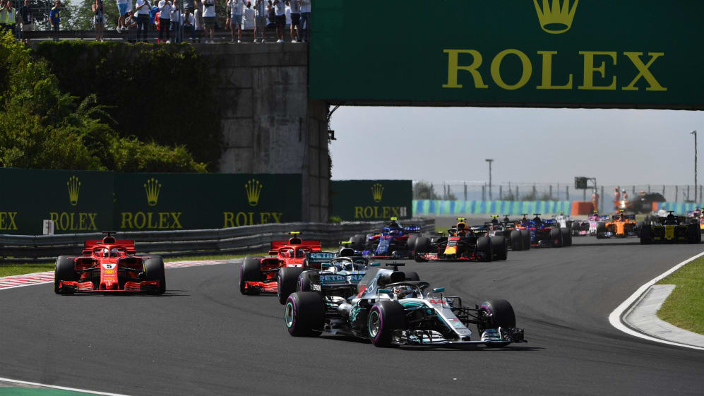Having finished qualifying in the pouring rain, polesitter Hamilton found himself on the grid on Sunday under a blazing sky. The Mercedes had looked to not enjoy the hot track temperatures in Hungary during practice, and many were predicting that if the two Ferraris starting in P3 and P4 could just get ahead of the silver cars off the line, it would be job done.