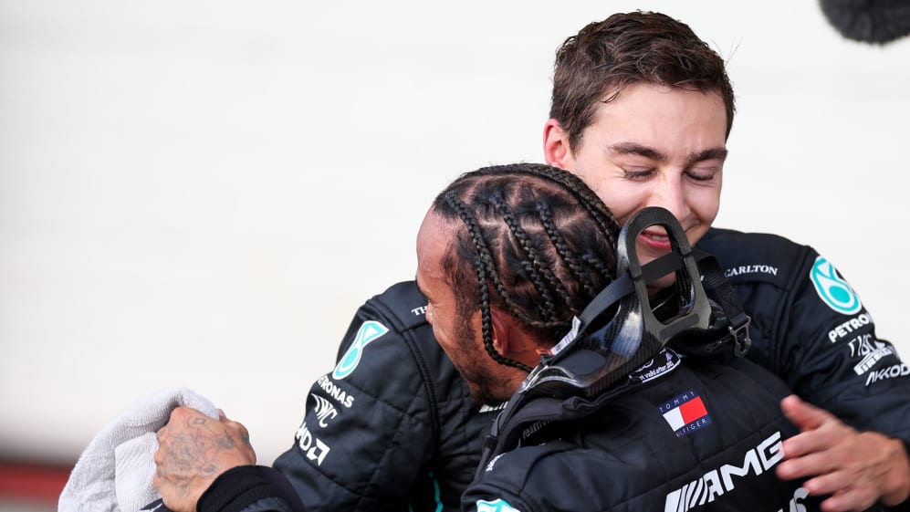 "I mean, it’s crazy to think that [both Mercedes are] starting on the front row, Lewis did a great job coming from P8, so it's going to be exciting," said Russell as he looked ahead to Sunday. "I’m sure Max is going to be flying tomorrow coming through the pack but we are in a luxury position that we can maybe split the strategy and go for the win.