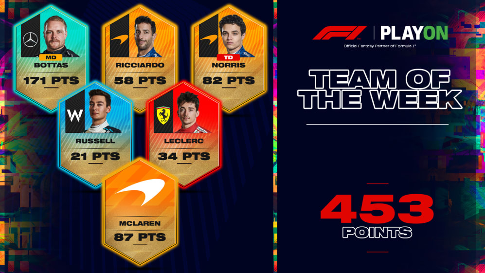 The team of the week at Monza was: Ricciardo, Leclerc, Norris (Turbo Driver), Bottas (Mega Driver), Russell, and McLaren as the constructors, which netted two lucky players 453 points each.