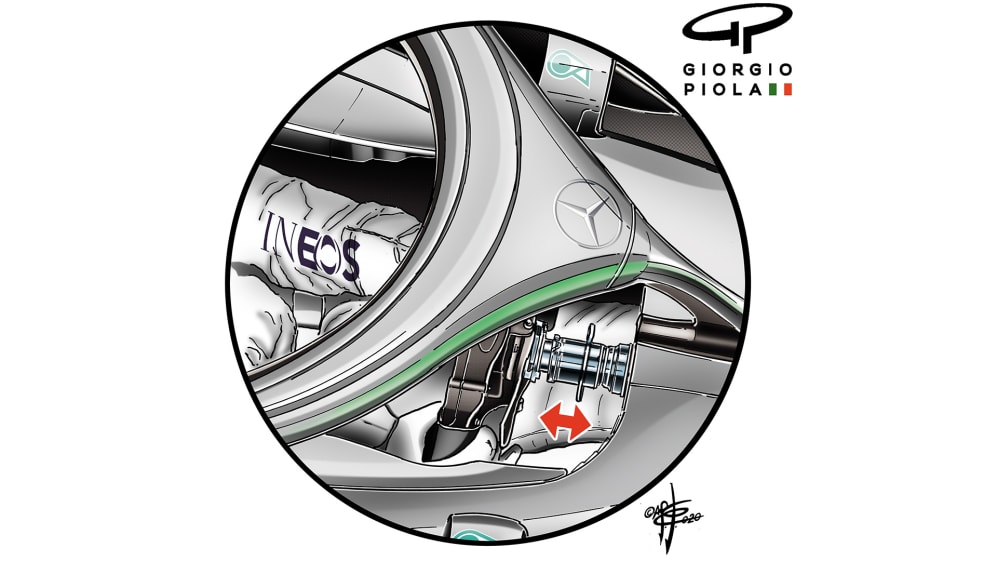 The rear needed more grip to be able to withstand the sudden increase in load from a more aggressive direction change. That’s what the new rear suspension layout facilitated through greater downforce. In this way, with the W11 Hamilton was getting to have his cake and eat it.