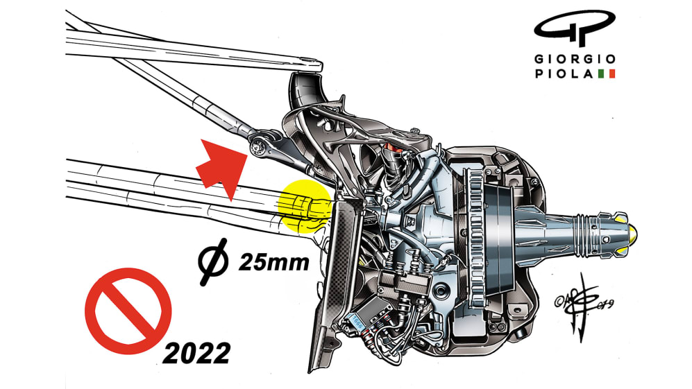For 2022 the articulation can be no more than 25mm inboard of the wheel hub, thereby limiting just how much leverage can be induced.