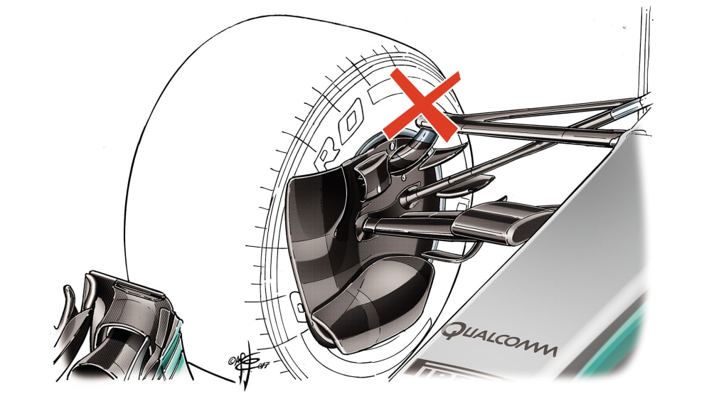 Achieving the most efficient trade-off between suspension geometry, strength, weight and aerodynamic effectiveness is a complex endeavour. Bringing the suspension mount points to within the volume of the wheel rim should simplify this aspect and reduce the advantage of the bigger teams, as well as helping make the wake less disruptive.
