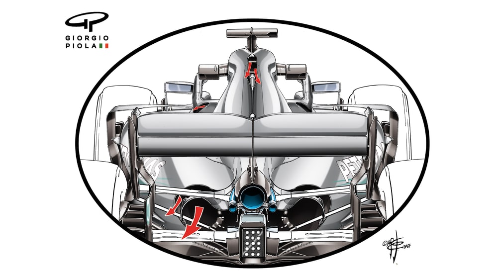 At Mercedes, meanwhile, they ran their double outlet layout seen at other hot tracks this year, but even this was not enough on Friday when the temperatures were at their highest. Mercedes had to run their engine in a reduced power mode during FP1 and FP2 in order to control the temperatures.