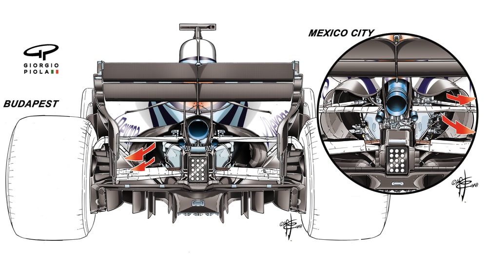 Aside from Red Bull’s form, other manifestations of the high altitude could be seen in the cooling levels being carried by the cars – which are extreme. Even though the ambient temperature was not as high as at Budapest in the summer, the cooling demand is even greater because of the thin air. Comparison of the size of the Williams cooling outlets from Hungary to Mexico reflects this.