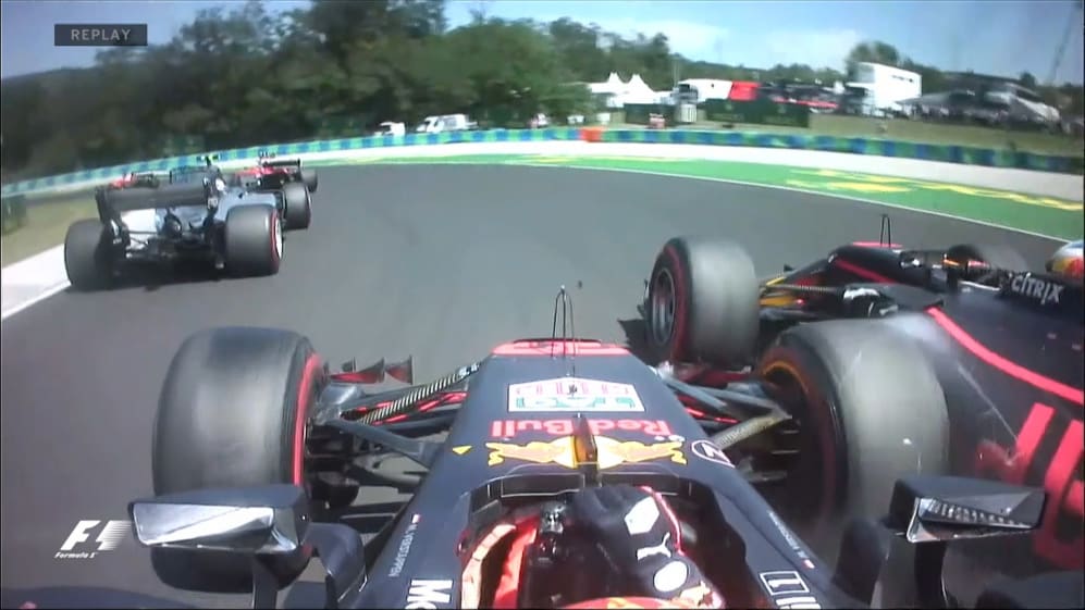 After starting behind Verstappen, Ricciardo passed the Dutchman on the outside on the run down to Turn 2, only for his colleague to understeer wide into the Australian’s RB13, causing it terminal damage.