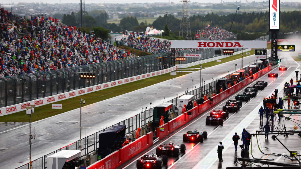 Following a wet Friday and dry Saturday, dark clouds loomed over Suzuka on Sunday morning, with showers arriving in the build up to the race and ensuring a sodden track for the start.