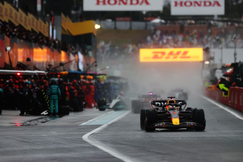 The race originally got under way as planned at 1400 local time, with Verstappen defending from Leclerc after a close run to Turn 1, and only two laps being completed before the action was red-flagged amid intense spray and a series of incidents – which included Carlos Sainz crashing out.