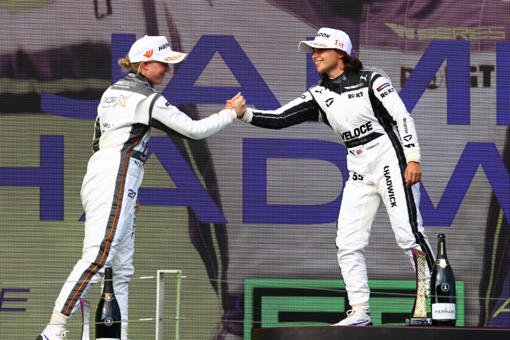 Veloce Racing's Chadwick beat rival Powell (Racing X) and led the whole race, a flurry of fastest laps giving her a 10-second lead by the chequered flag. With her fourth Series victory, Chadwick is now one point clear of compatriot Powell in the standings.