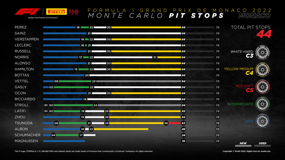 Leclerc swapped from wets to intermediate tyres on Lap 18 and then again for hard compounds on Lap 21 in a double-stack pit stop, which saw the Monegasque fall to P4, and Sergio Perez lead the race. Red Bull then overcut Ferrari with their own double-stack on Lap 22 for Perez to continue to lead and eventually take victory – Carlos Sainz finishing second despite briefly being in the lead.