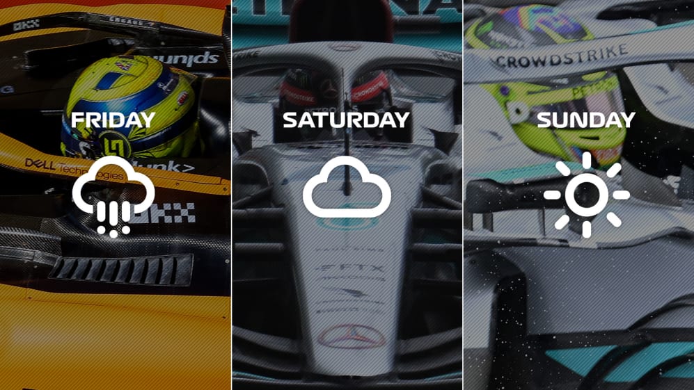 The outlook at this stage suggests that there is a slight chance of rain on Friday and Saturday for the practice sessions and qualifying – but it should be sunny for the race.
