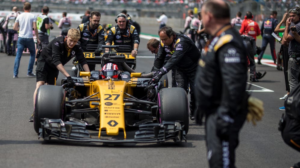It was a bad day for most of the Renault runners; Carlos Sainz had a high-speed spin early on and a pit stop to change flat-spotted tyres, and never really featured again as he ran just ahead of Hamilton for a long time and later retired with the handling awry due to a mechanical steering problem.