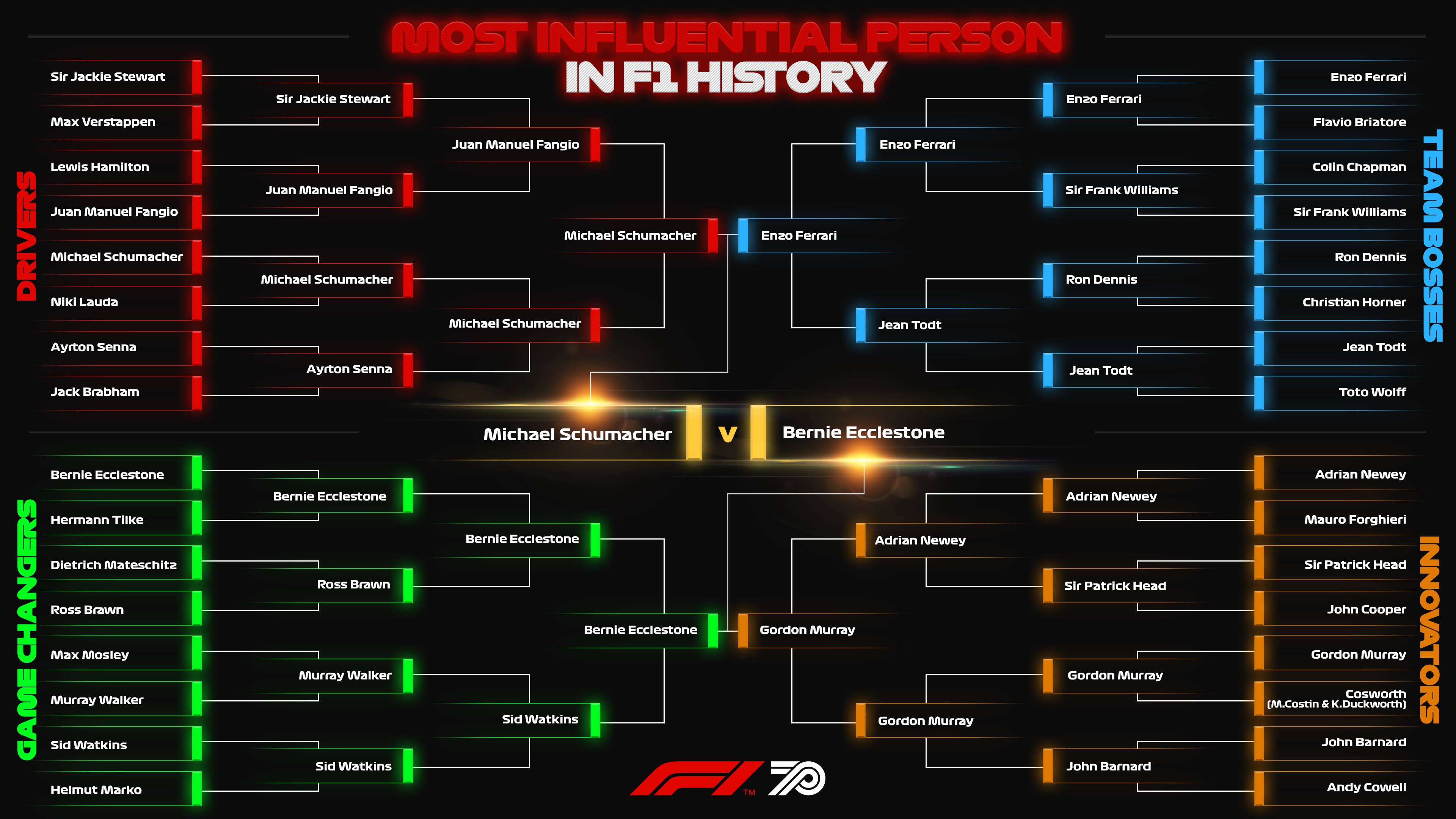 Our quest to find the most influential person in F1 history is really getting serious now, and after another round of voting two more giants of the sport have been knocked out.