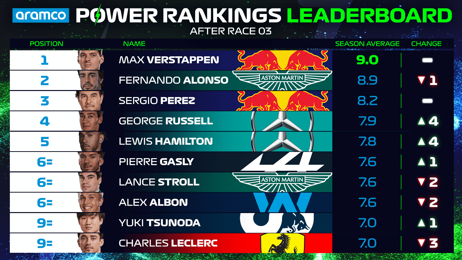 POWER RANKINGS: Team mates share the top spot as the judges' scores come in from a dramatic Australian GP
