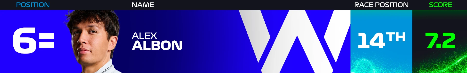 A strong start to Sunday’s race initially put Alex Albon in the mix for points, with the Thai-British driver and Williams punching above their weight. But his charge was undone by strategy, first when he got stuck behind Fernando Alonso after a failed undercut attempt and then when his two-stop approach became a three-stop before being reverted to a two-stop, leaving him with heavily worn tyres. With all of that in mind, the judges took note of Albon’s efforts and his potential to bag points.