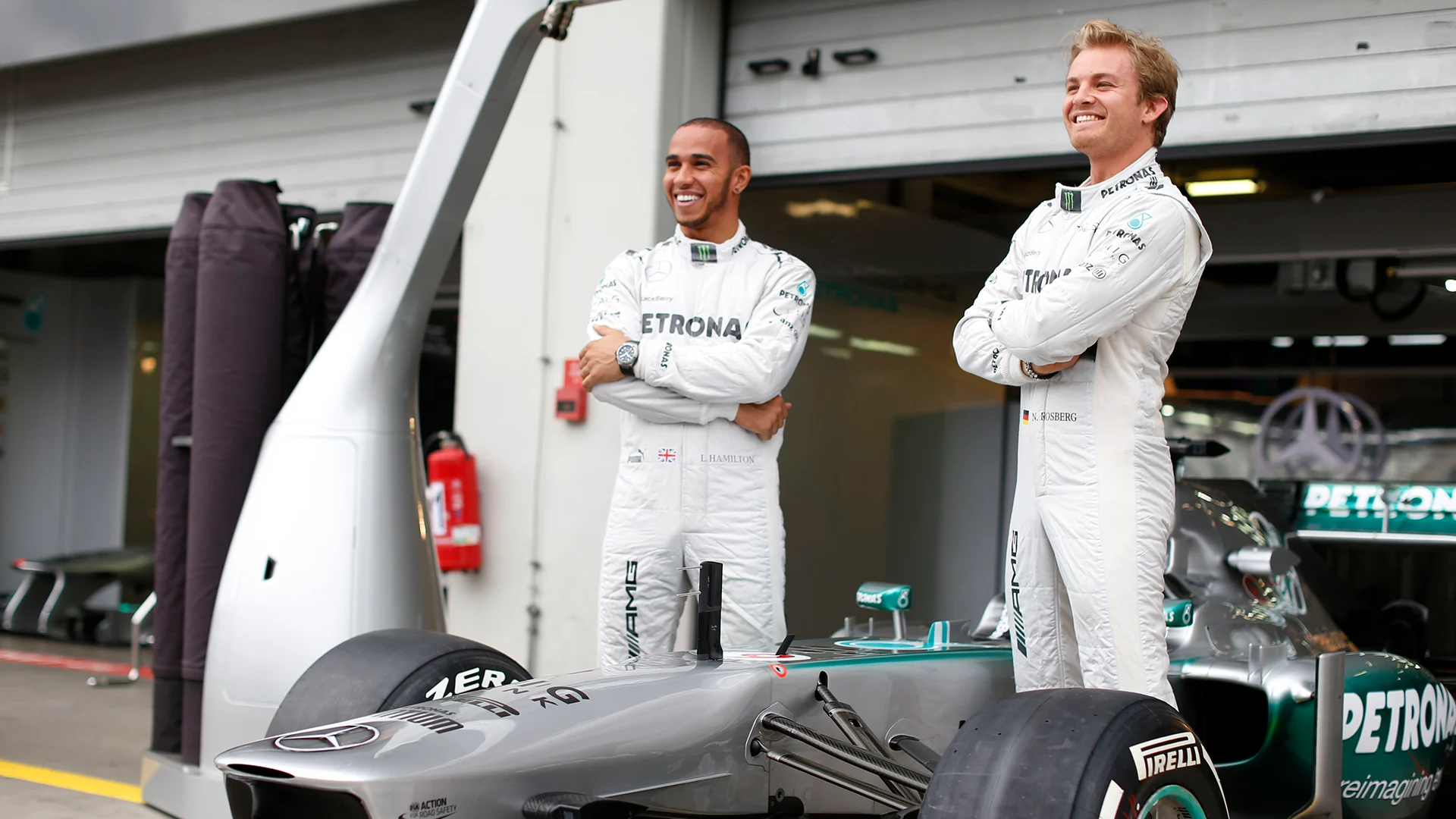After their well-documented stint as team mates in karting, Rosberg admitted that “there were some different aspects that came into it” when he linked up with Hamilton again in F1, “like his strength in the media and team internally”.
