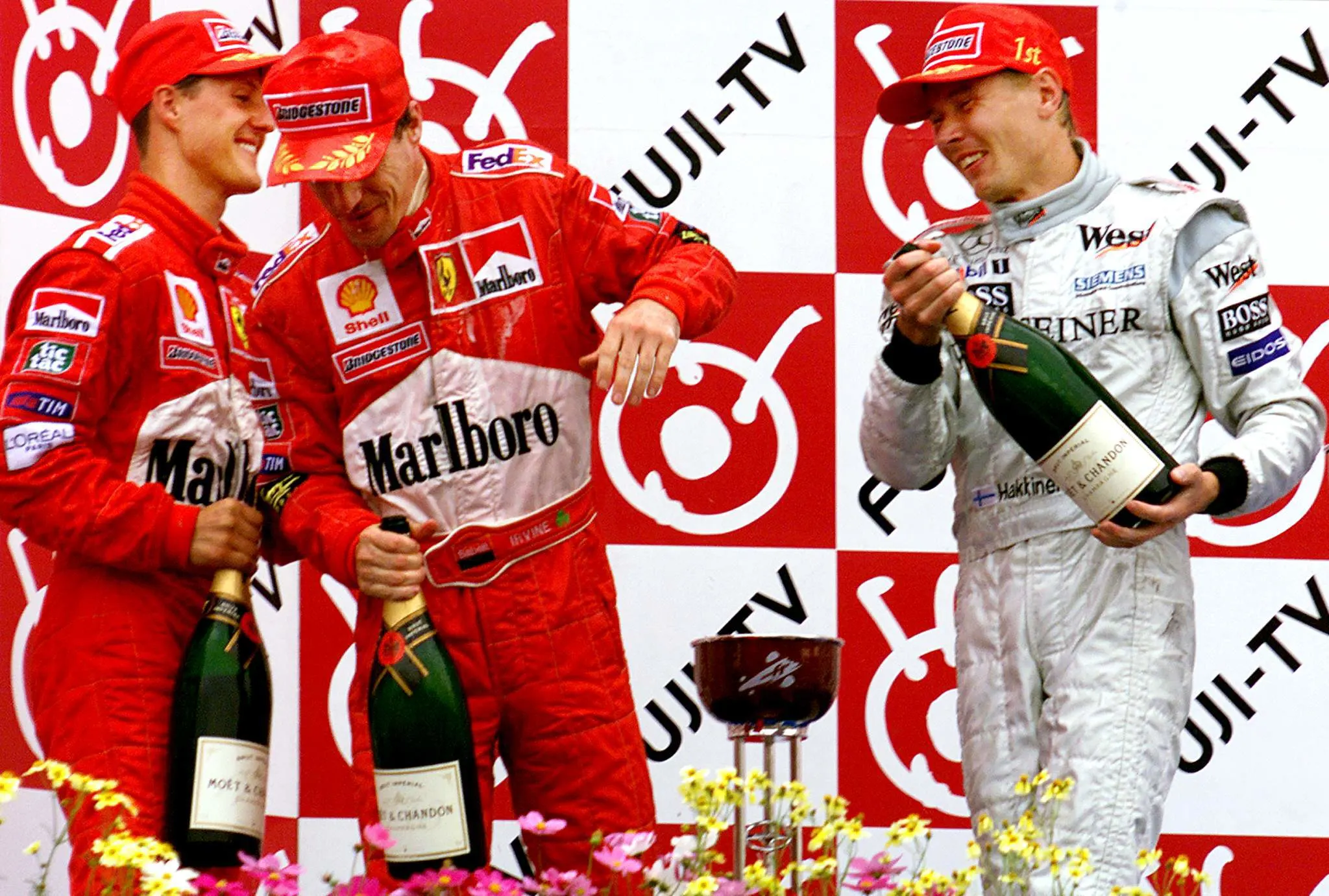 And Schumacher won it in style, clinching the title with a race to spare with victory in the 2000 Japanese Grand Prix at Suzuka. It came in a classic duel of the refuelling era with Hakkinen, jumping ahead at the second pitstop and leading the McLaren driver home.
